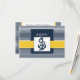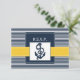 navy blue and white stripes with yellow border and white dotted border featuring an anchor, Mod nautical wedding rsvp. Matching products also available.