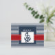 navy stripes, anchor, nautical wedding rsvp invitation postcard