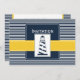 navy blue and white stripes with yellow border and white dotted border featuring an lighthouse, Mod nautical wedding invites. Matching products also available