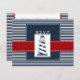 navy blue and white stripes with red border and white dotted border featuring an lighthouse, Mod nautical wedding rsvp. Matching products also available.