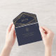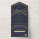Elegant and vintage wedding all-in-one invite inspired by a tarot card in navy and gold featuring a design of a sun, moon, stars, and clouds, and your very own QR code. PLEASE NOTE the gold featured in this design is NOT real foil and is printed in flat colours. Matching Items in our shop for a complete party theme.