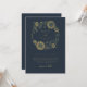 This navy blue wedding invitation blends timeless elegance with modern convenience. A golden sunflower wreath frames the couple’s names in a refined, serif typeface, while delicate script accents add warmth. The rich contrast between the deep blue and soft sunflower yellow gives the design a rustic yet polished feel. The back features a discreet QR code area—perfect for linking to your wedding website, RSVP form, registry, or travel info. Please note: the gold colour is printed only, not foil or metallic.