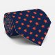 A sophisticated navy blue necktie featuring a subtle pattern of small carrot-orange stars. The minimalist star design adds a playful yet refined touch, creating a balanced contrast against the deep dark background.
