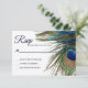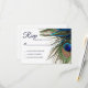 Navy Turquoise Peacock Feather Boho Wedding RSVP Card