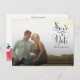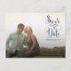 Gorgeous navy blue cursive script typography on the front of this designer save the date postcard {which is part of a full matching suite} which you can upload into with your own engagement/save the date photo portrait. Easily and quickly personalize this designer professionally printed save the date postcard here and now by just typing over the example text and adding your own photograph. Elegant, chic, simple and classy navy script/cursive typography