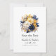 Navy, white, and gold floral wedding save the date. Ideal for a garden wedding.
