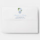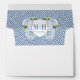 Return Address envelope design. The liner features a dark blue and white Greek Key print and a couples monogram crest, with a classic ginger jar filled with blue and white flowers on each side. The reverse flap has the name/ return address in pale blue and navy blue, complemented by the same vase with flowers that is on the liner. This design matches my "Ginger Jar Blue White Florals Chinoiserie Chic" range of stationery.