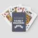 Commemorate your family reunion in a unique way with these custom playing cards. Design features a deep midnight blue background with white text and banner. Customize with your family name and reunion year. Great favor for everyone at the gathering!