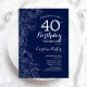 Navy White Floral 40th Birthday Party Invitation