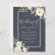 Navy & White Floral Elegant Wedding Invitation