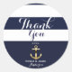 Navy White & Gold Anchor Nautical Stripe Favour Classic Round Sticker