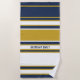 Navy White Gold Stripes Pattern Personalized Beach Towel