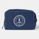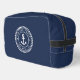 Organize your essentials with this customizable navy nautical toiletry bag by Redwood & Vine Design Co. Designed with a bold white anchor and rope emblem, this sturdy bag can be personalized with your boat name, year, or custom text. Perfect for sailing excursions, beachside vacations, or everyday travel, it makes a functional and stylish gift for those who love the sea.