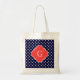 Navy White Polka Dot Coral Quatrefoil Monogram Tote Bag