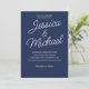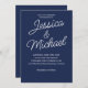 This elegant navy blue wedding invitation blends timeless sophistication with modern minimalism. Featuring flowing script names paired with clean block text, the crisp white typography stands out against a rich navy background for a bold yet refined aesthetic. Ideal for formal weddings, evening ceremonies, or nautical-inspired themes, this design offers a polished look that’s easy to personalize with your event details. Matching RSVP and details cards available for a cohesive suite.