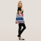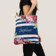 Navy White Stripe Modern Floral Personalized Tote Bag