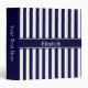 Navy White Stripe Navy Blue Ribbon Name Monogram Binder