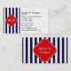 Navy White Stripe Red Quatrefoil 3 Monogram Business Card