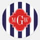 Navy White Stripe Red Quatrefoil 3 Monogram Classic Round Sticker
