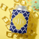 Navy Blue and White Moroccan Quatrefoil Trellis Pattern #5, Pineapple Yellow Quatrefoil 3 Initial Monogram Label