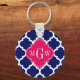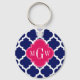 Navy Wht Moroccan #5 Raspberry 3 Initial Monogram Keychain