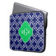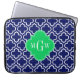 Navy Wht Moroccan #6 Emerald 3 Initial Monogram Laptop Sleeve