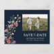 Navy Wildflowers Save The Date with Photo Postcard. This stylish & elegant save the date Postcard features gorgeous hand-painted watercolor Wildflowers. Find matching items in the Navy Blue Wildflowers Dreams Collection.