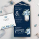 Navy Wood Mason Jar Dusty Blue Floral Wedding All In One Invitation