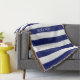 Navy Wt Horizontal Preppy Stripe #2 Name Monogram Throw Blanket