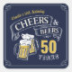 Stylish cheers and beers to 50 years typography design in navy blue, yellow and white, Custom it with your own text, fun and unique, great for any age adult birthday party for men, or anniversary party for any occasion.