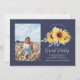 This elegant sunflower graduation invitation features a watercolor sunflower bouquet with your graduate's photo on a navy blue background. The back features 3 more photos with space for their name and graduation details.