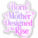 Inspirationnel autocollant rose et violet avec l'expression "Né à Mère, Conçu pour se lever" avec d'élégants accents feuillus. Parfait pour les ordinateurs portables, les journaux ou les cadeaux de la fête des mères.