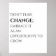 Ne craignez pas le changement, prenez-le comme une occasion de grandir. Poster Motivationnel, Oeuvre Murale Motivationnelle, Citations, Poster Imprimable En Classe, Poster De Devis Motivationnel, Décor De Bureau, Cadeau De Bureau, Autonomisation, Citations Positives, Poster Inspirationnel, Cadeau Entrepreneur, Poster De Devis Motivationnel, Travail Dur Motivationnel, Poster Minimaliste.