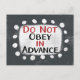 Ne pas obéir à l'avance carte postale