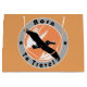 Design original, célébrant un voyageur aguerri, le pélican, placé sur un arrière - plan de ciel nuageux orange. Celui-ci s'adresse à tous les touristes et amateurs de faune, qui aiment voyager autour de notre beau monde naturel.