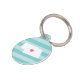 Let your furry friend show some home state pride with this cute Nebraska pet ID tag. Design features a white silhouette map of the state of Nebraska with a pink heart inside, on a tone on tone turquoise stripe background. Add your pet's name and contact information to the back in white lettering on an aqua background.