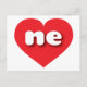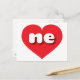 This postcard features a vibrant red heart containing the bold, white, rounded lower case letters ne, a playful abbreviation for Nebraska, the cornhusker state. The reverse side of the postcard is blank, awaiting your handwritten sentiments or customized text.