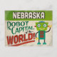 A funny Nebraska vintage travel postcard featuring a friendly robot with fun retro style text that says, "Nebraska, Robot Capital of the world!"