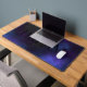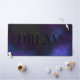 Tapis de bureau avec le mot "rêve" en lettres majuscules noires solides dressé contre un ciel étoilé noir doux au milieu des nuages d'espace nébuleux bleus et violets. Subtil, sombre et profond comme le royaume mystérieux des rêves. Utilisez le modèle de texte pour ajouter un nom ou une citation courte inspirante. ♡ Idyllfire