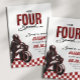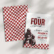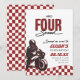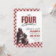Your little guy has a need FOUR speed! Celebrate your sons 4th birthday with our red, black and white speedster fourth birthday invitation.