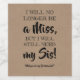 "I will no longer be a Miss but I will still need my Sis!" wine or beer labels. Funny and creative way to ask your bridesmaid or maid of honour "Will you be my Bridesmaid?"