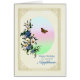 A beautiful floral birthday card for a neighbour. A lovely bouquet of blue and white flowers with a brown butterfly in flight. The picture has a delicate golden frame.