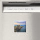 Souvenir photo magnet of a landscape with the iconic Neist Point Lighthouse, built on the cliffs at the western coast of the island of Skye, one of the Hebrides in Scotland, at sunset.