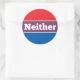 Independents unite! If you're neither a democrat or a republican, or prefer a third party candidate, then here's a simple, bold design for you! A purple stripe with the word “neither” in white sits in the middle. A stripe of red sits on top and a blue stripe sits on the bottom. It's a nice even mix of liberal and conservative, perfect for voting none of the above on election day.