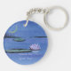 Une aquarelle d'un nénuphar de lotus dans un étang sous une lune de croissant orne ce porte - clé "Peace Be Upon You !" ! Customisez en changeant le texte pour vous-même !