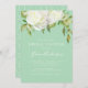 An elegant, floral bridal shower invitation with a beautiful arrangement of watercolor white peony flowers and greenery. Shown with a Neo-Mint Green background colour which can be customized to match your wedding theme. Just select the 'customize it' button to see additional design options.