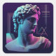 classical Greek sculpture with the vibrant, nostalgic aesthetics of the 1980s vaporwave movement.