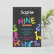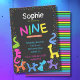neon animal balloons 9th birthday invitation