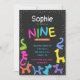 Cute neon colours animal balloons invitation for 9th birthday