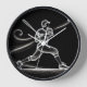 Glowing neon baseball player swinging a bat at the ball with light trails on a black background.